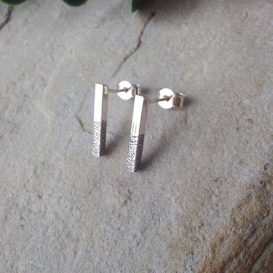 Glitter Texture Drop Bar Sterling Silver Stud Earrings