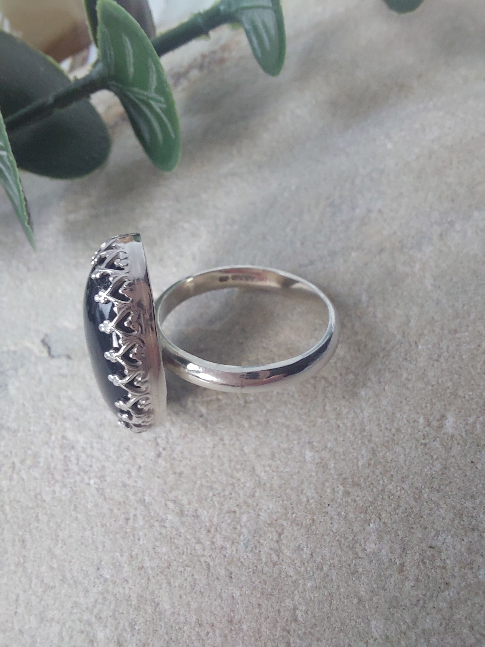 Fancy Set Black Onyx And Sterling Silver Dress Ring. UK size N 1/2