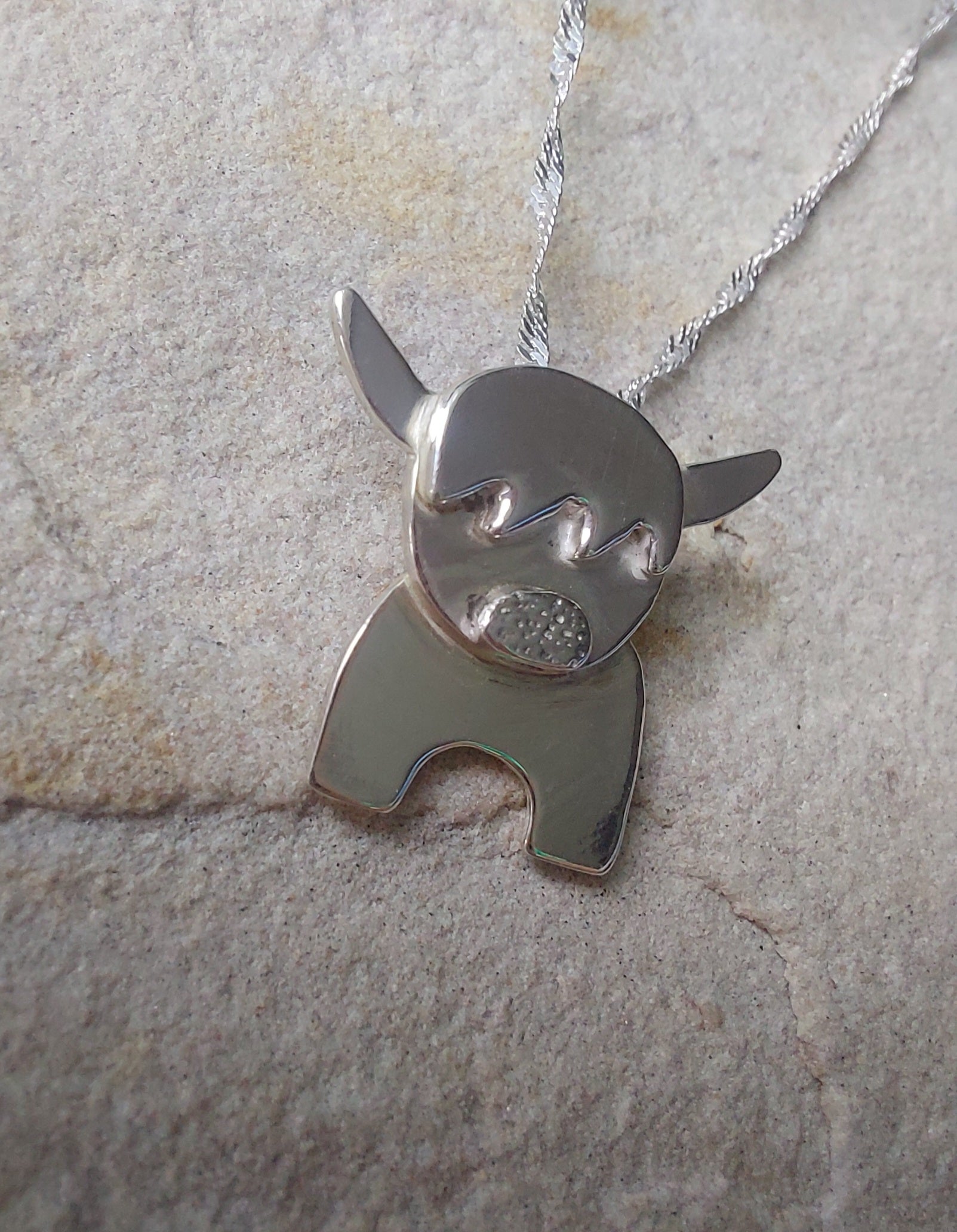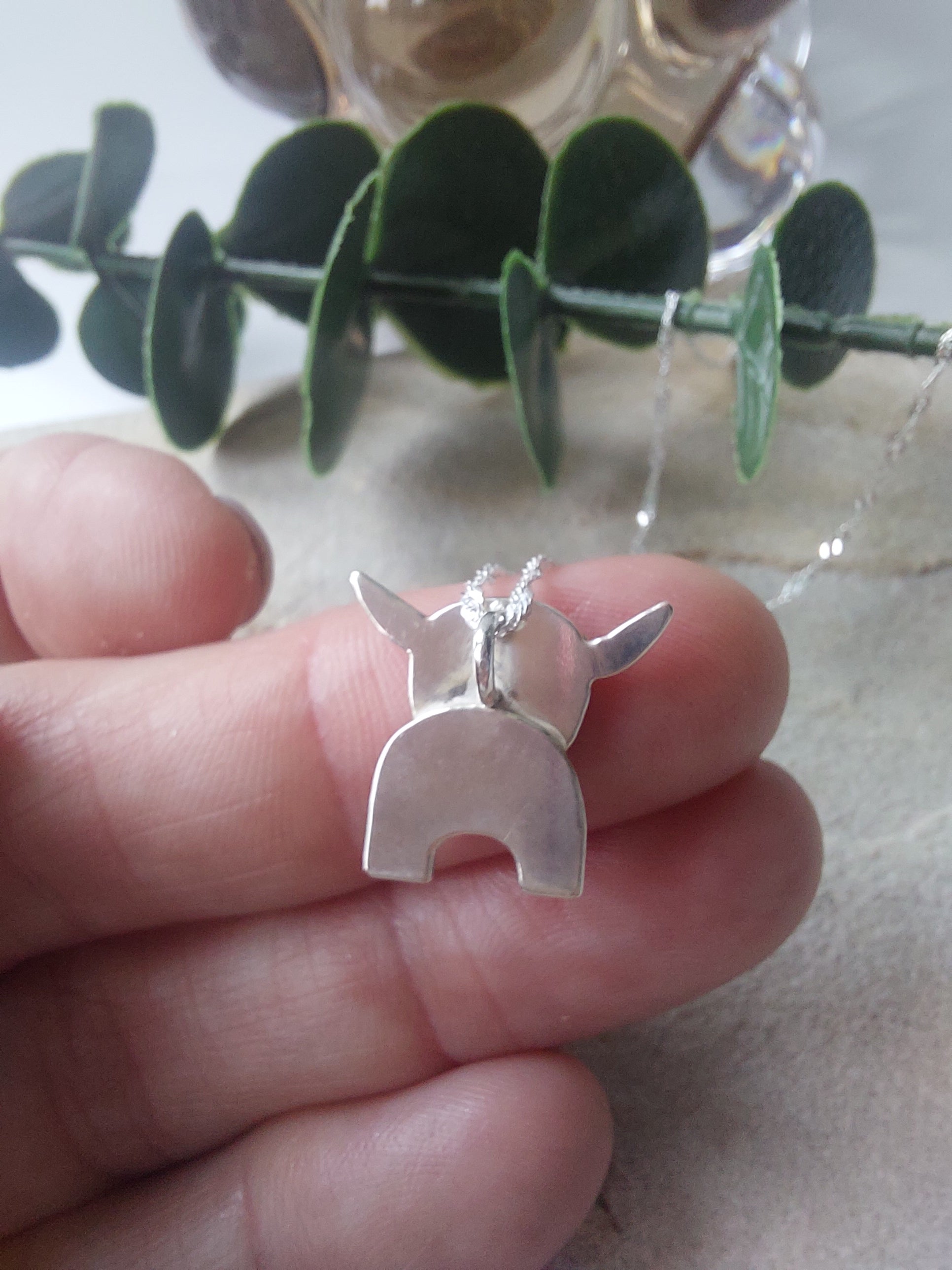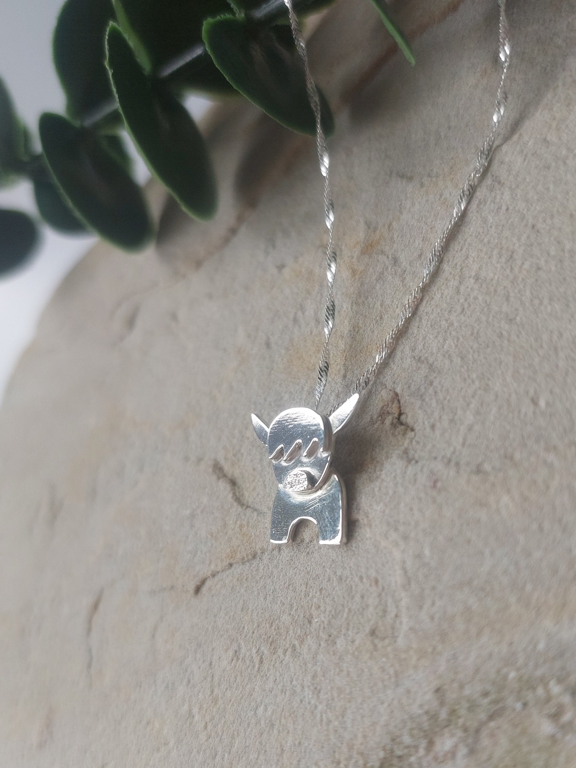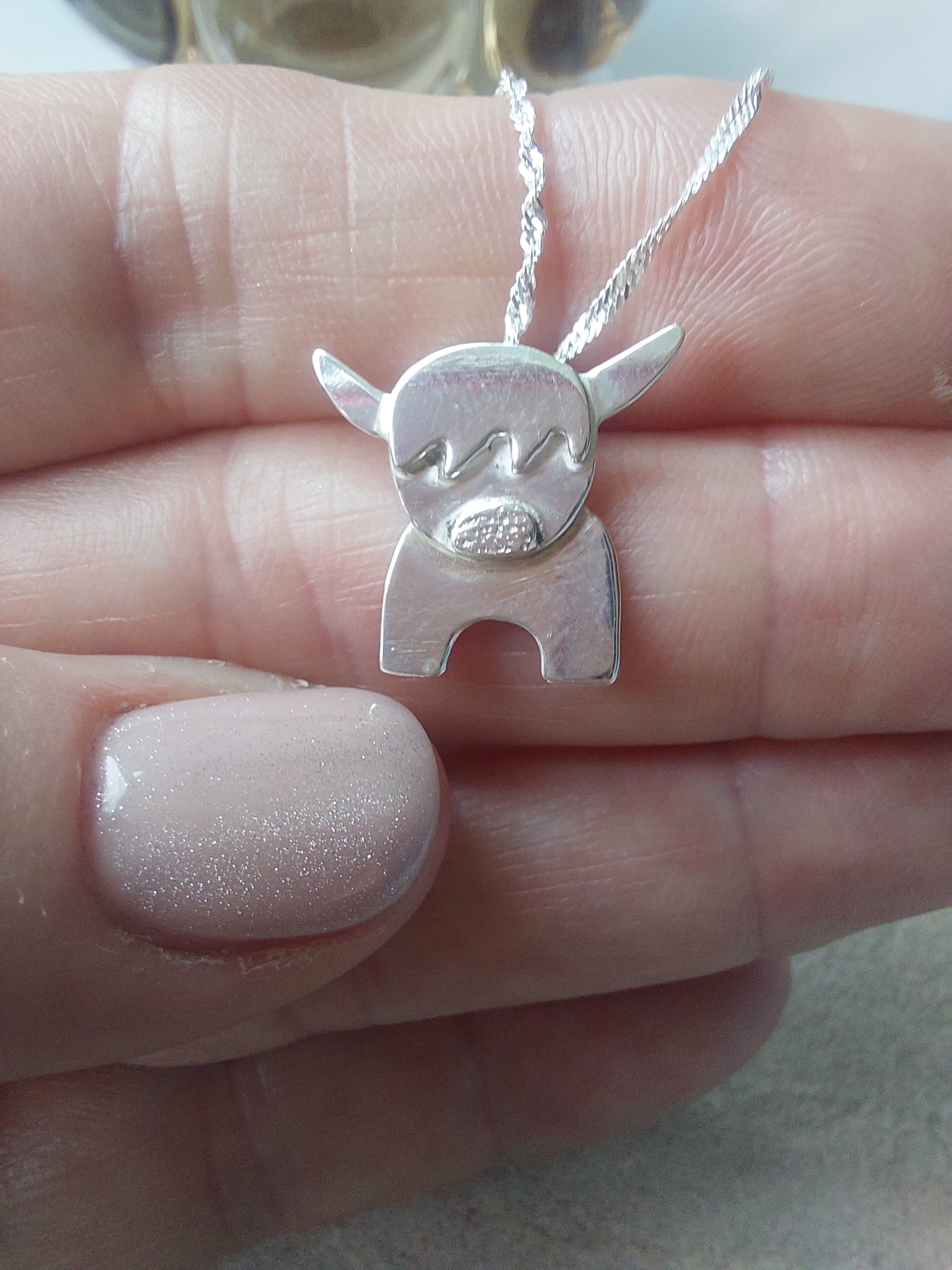 Dainty and quirky little highland cow necklace hand crafted from sterling silver.
