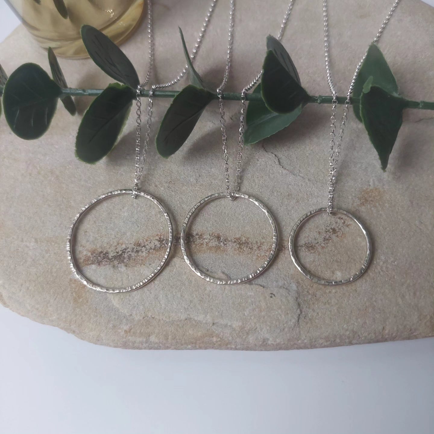 Open Circle Textured Silver Pendant - 3 sizes available.