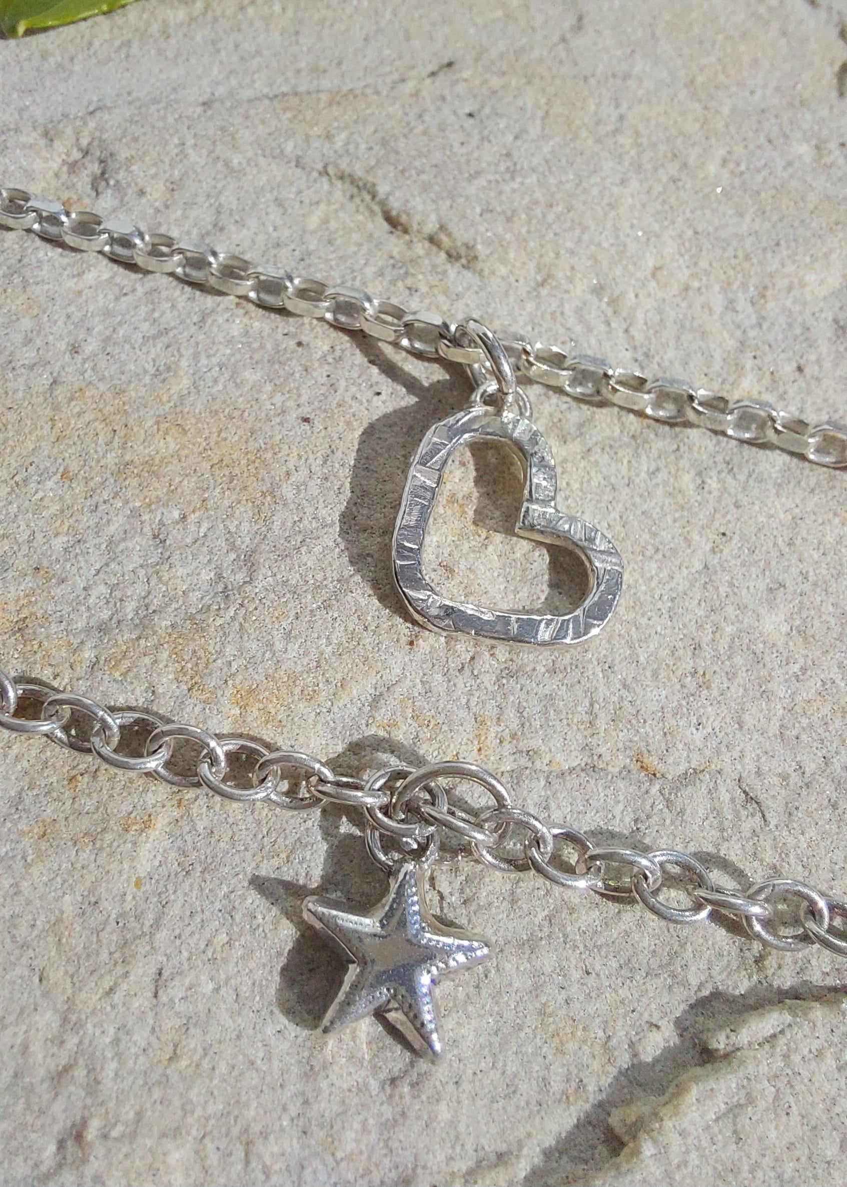 This is a delicate charm bracelet featuring a single elegant star or heart charm. The charm hangs from a fine chain, adding a touch of sparkle and personality to any outfit. Perfect for everyday wear or as a thoughtful gift