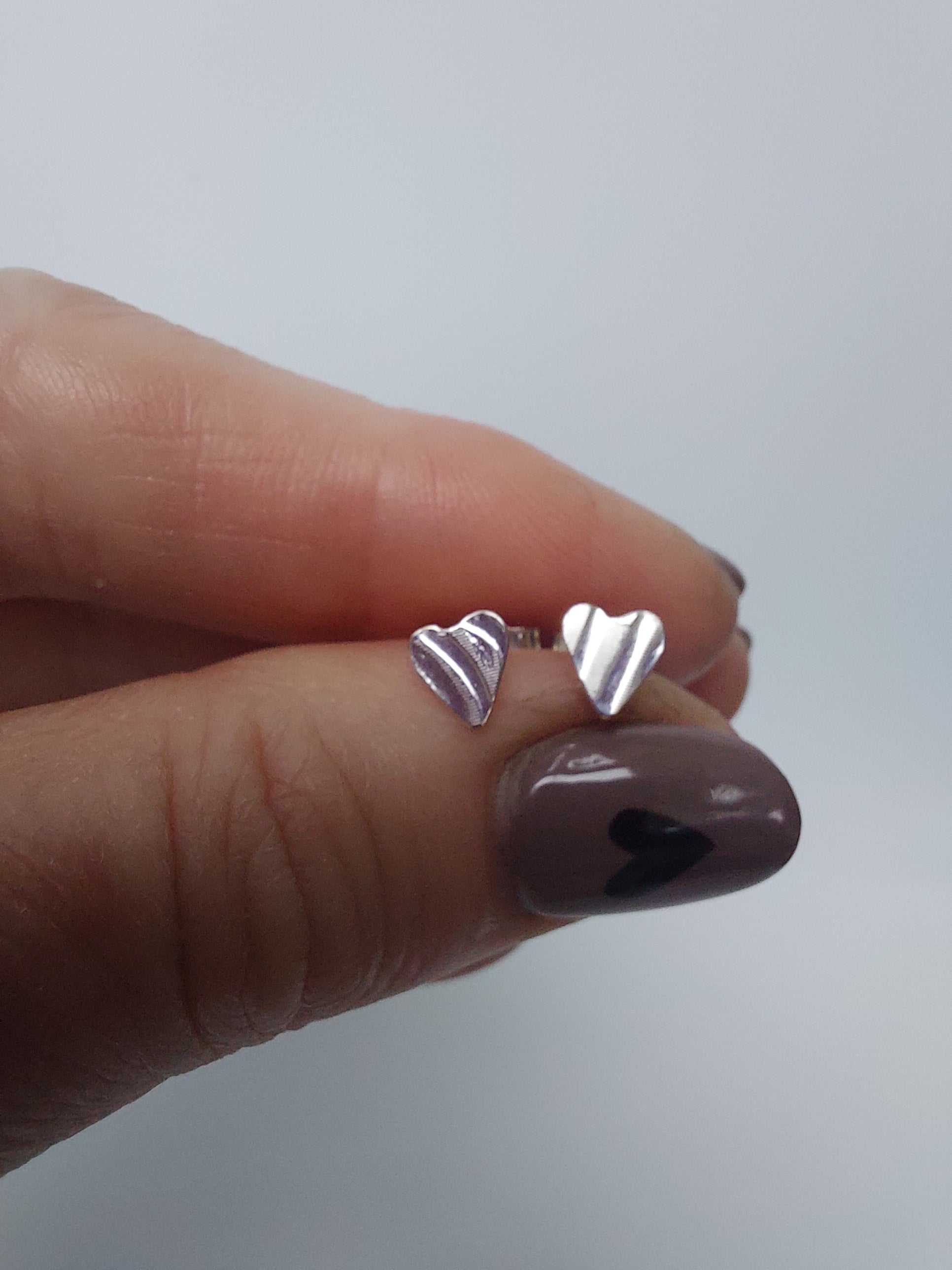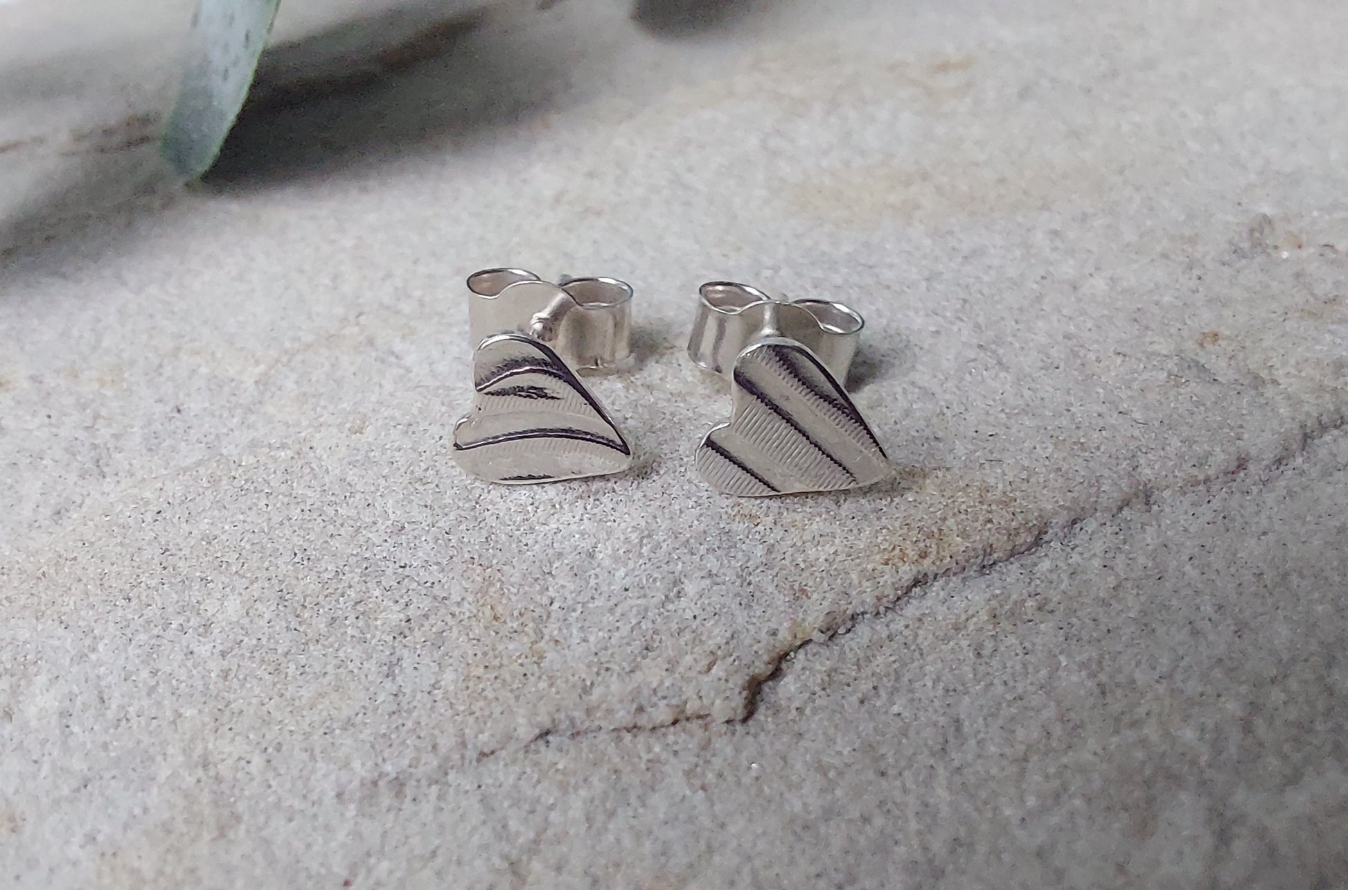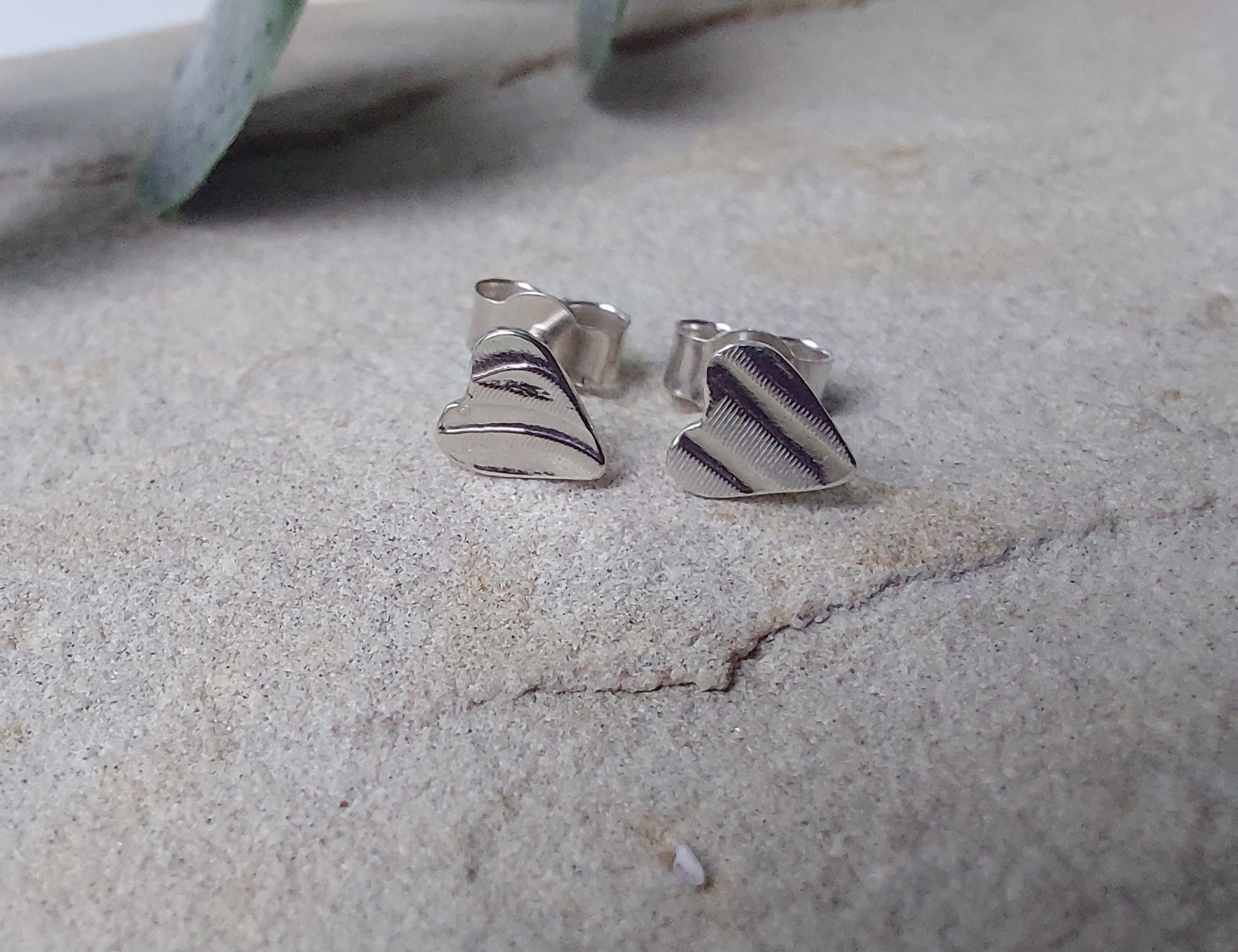 Beautifully textured sterling silver heart shaped stud earrings. Perfect, easy to wear everyday earrings.